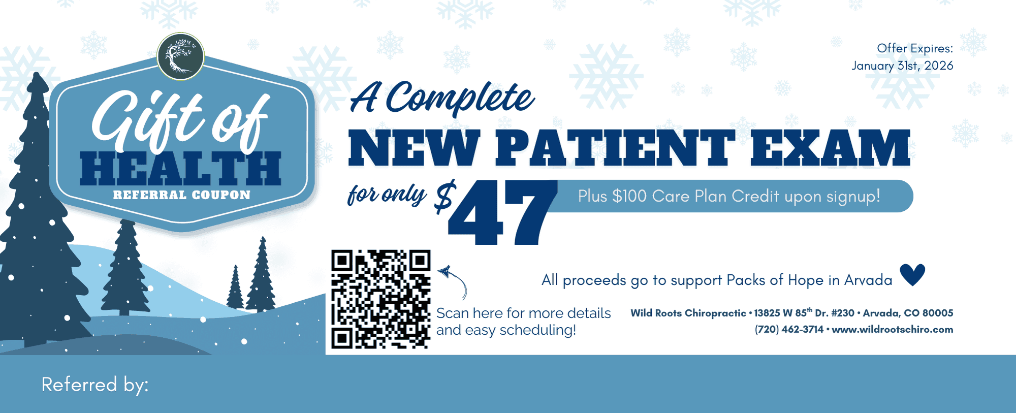 Valid thru January 31st, 2026 so that you can use it during December to combat the holiday stress if you’d like, or you can get started in January as part of your healthy New Year’s Resolutions! Let us help you get your health back and at full steam in 2025!